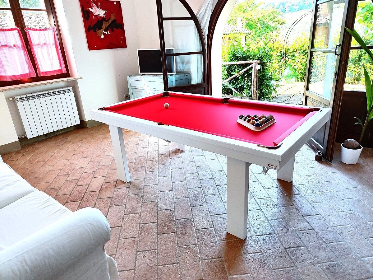 Essendo l'obiettivo della Vi.Ga. Biliardi quello di soddisfare le esigenze più differenti, gli artigiani realizzano anche un prodotto adatto alle abitazioni più piccole: stiamo parlando del biliardo-tavolo che, all'occorrenza, può essere utilizzato sia per giocare che per usi domestici